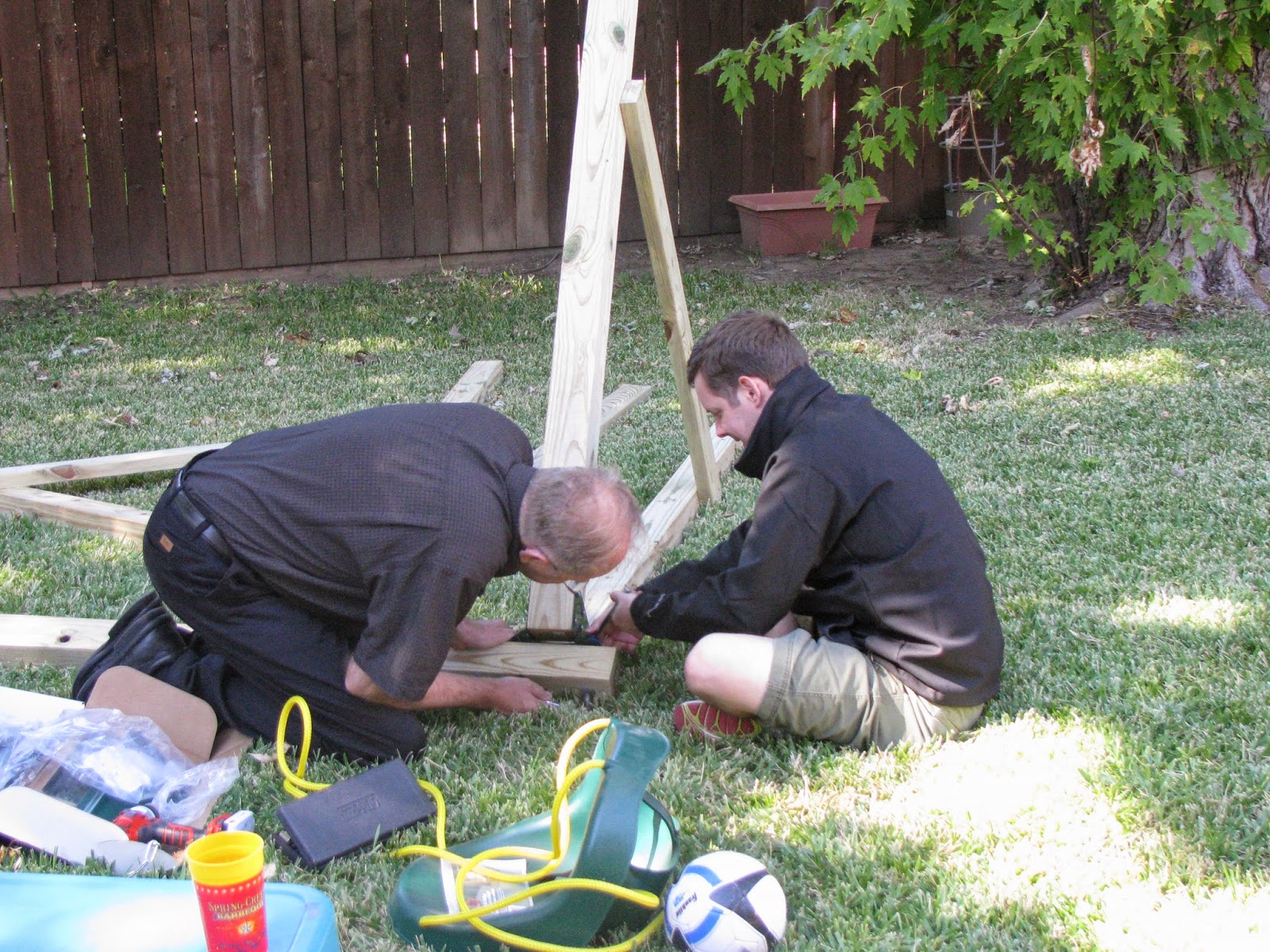 We were going to go on a train ride this morning, but Dad said, "I'd rather build you a swing set with the money we would have spent on the train." So he did! With some help from Sam, of course, and with lots of "help" from the kids.