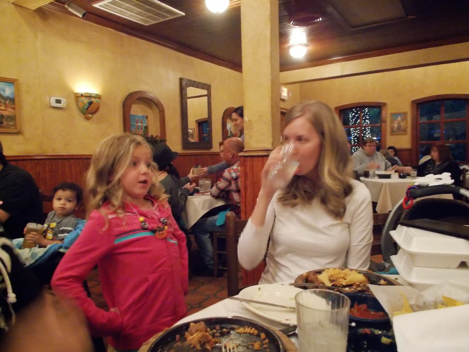 That large yellow thing in Levi's hand is what they call a "nacho." It's a crispy corn tostada shell with tons of melted cheese on it. Levi called it a giant cheesy chip. He was so sad when they were done that he asked the waitress at the end of the meal if he could have another one. He was very pleased.